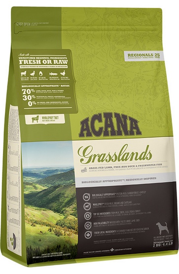 ACANA Grasslands powstała z inspiracji rozległymi kanadyjskimi łąkami i jeziorami. Zawiera świeżą jagnięcinę, kaczkę, jaja, ryby oraz indyka.