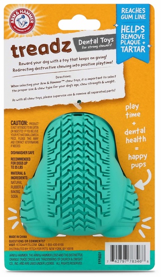 Super Treadz to linia uznanych na świecie zabawek dentystycznych dla psów! Zabawki wykonane są wyjątkowo wytrzymałej gumy naturalnej. Zawierają sodę oczyszczoną dzięki czemu zwalczają nieświeży oddech, zmniejszają gromadzenie się płytki nazębnej i kamienia bez szczotkowania!