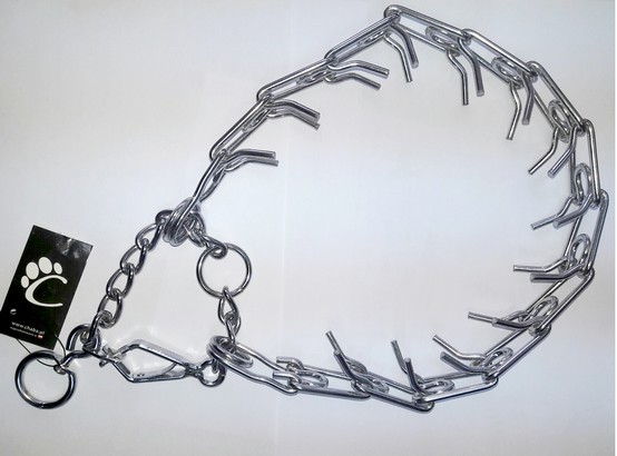 Popularna obroża typu "kolczatka", o budowie łańcuszka, którego ogniwa zakończone są wystającymi, tępo zakończonymi końcami drutu.