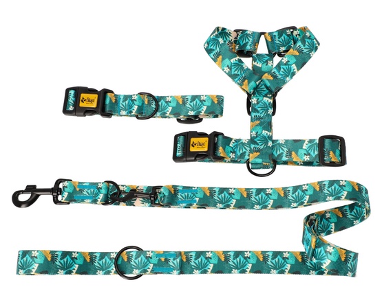 Obroża regulowana została stworzona z myślą o wakacyjnych szaleństwach – tropikalny wzór Monstera sprawi, że Twój pies i Ty od razu poczujecie wakacyjny klimat!