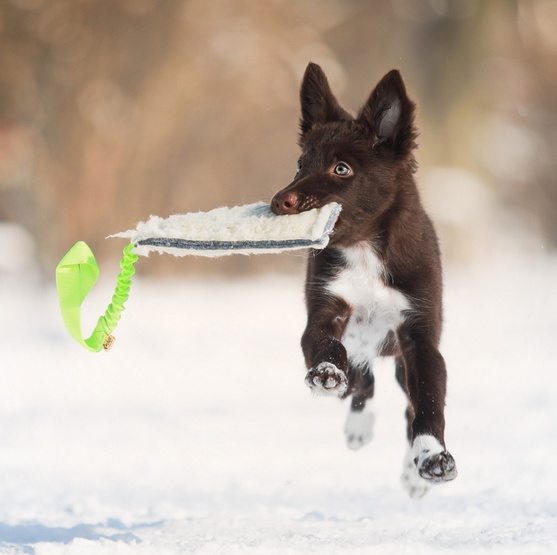 Bardzo dobrze sprawdzi się przy nauce w aportowania i gryzienia.