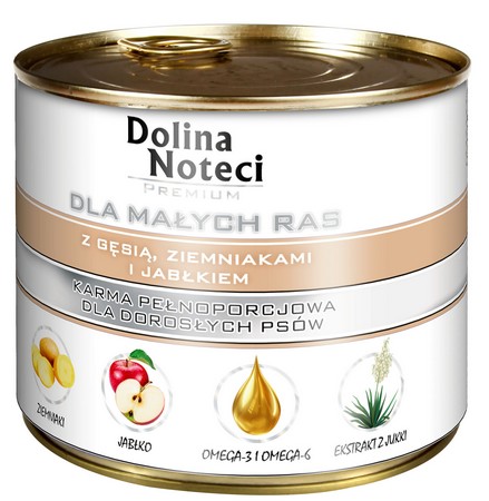 Dolina Noteci Premium Pies Mały Gęś, ziemniaki i jabłko puszka 185g karma dla psa
