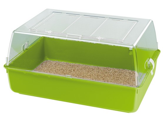 Klatka jest łatwa w utrzymaniu czystości, dzięki prostemu w obsłudze systemowi klipsów bocznych, które pozwalają oddzielić od siebie poszczególne elementy.