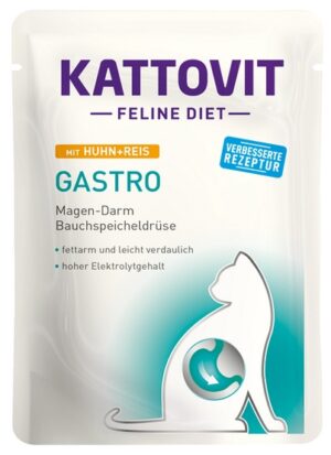 Kattovit Feline Diet – GASTRO został opracowany specjalnie dla kotów z problemami żołądkowo-jelitowymi (żołądek, jelita, trzustka). Ta dieta ma niską zawartość tłuszczu w szczególnie łatwostrawnym składzie i zwiększonej zawartości elektrolitów. Łatwostrawny pokarm ze zwiększoną zawartością sodu i potasu. Dieta Kattovit Diabetes jest wskazana aby zrekompensować niewystarczające trawienie i zewnątrzwydzielniczą niewydolność trzustki, a także złagodzić zaburzenia…