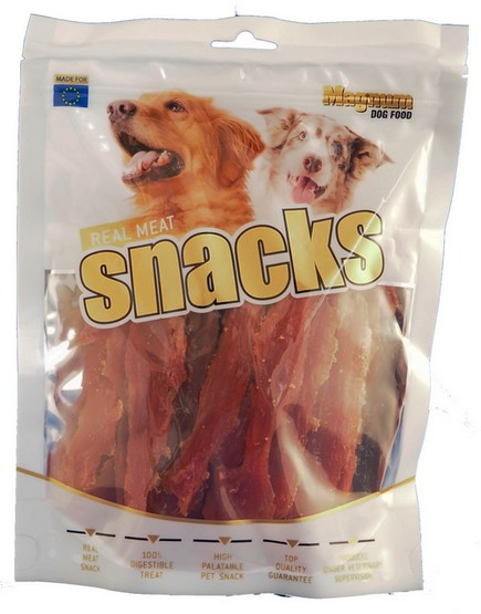 Magnum Miękki filet z kaczki (Magnum Duck Breast Soft) Uzupełniająca karma dla psów – miękki i smaczny przysmak do podawania jako nagroda. Skład: mięso kaczki, skrobia, sorbitol, gliceryna…