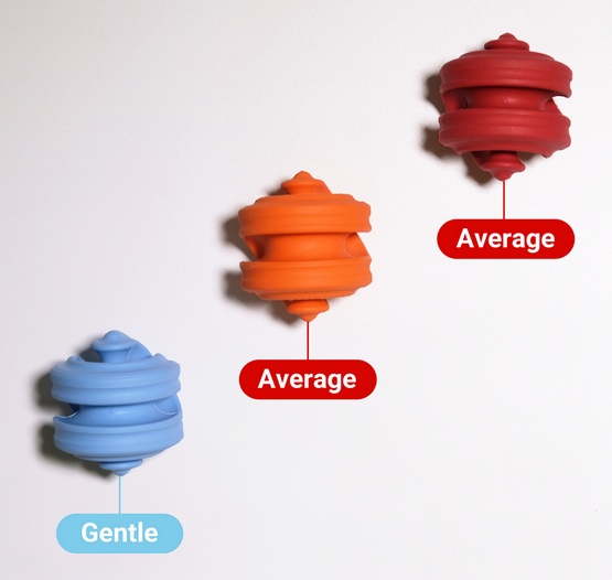 • zabawka Geo-Hex w kolorze błękitnym jest mniej twarda od czerwonej i pomarańczowej.