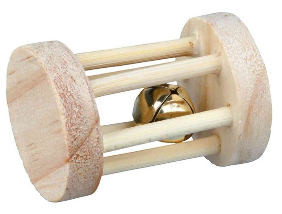 Drewniana rolka dla gryzoni Rolka służy do zabawy, przeznaczona jest dla małych gryzoni – mysz lub chomik. Dzwoneczek ukryty we wnętrzu zabawki stanowi dodatkową atrakcję. Materiał: drewno…