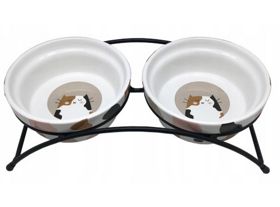 Yarro/Moderna Miska ceramiczna podwójna dla kota na stojaku metalowym [Y2763]